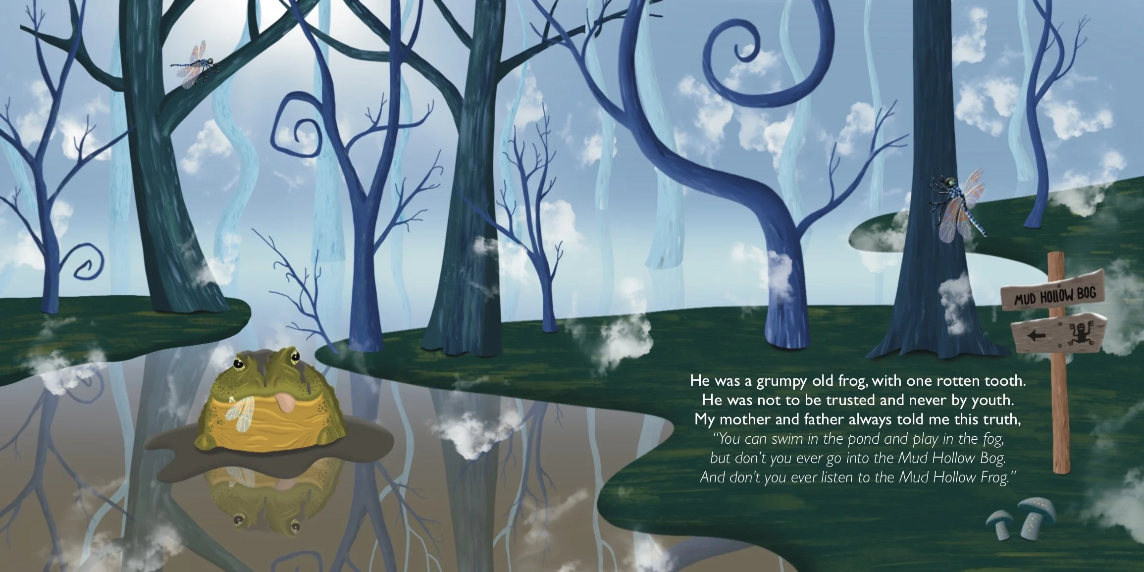 This is one of my illustrations from “The Mud Hollow Frog.” When creating art inspired from a story, the visuals should match the narrative. The emotional resonance of this tale was eerie and whimsical. I used deep blues and hazy air to create an ominous atmosphere. The only significant warmth comes from the frog’s sickly yellow-green body, which makes him stand out as the focal point.
